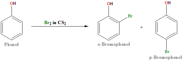 Phenol is brominated in solvent \(CS_2\) at low temperature. The products formed are |