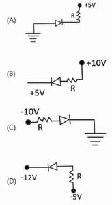 Four diode connections are given below. Identify the diagram in which the diode is forward biased. Choose the correct answer from the options given below. |