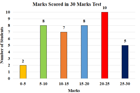 Number of students scored 10 or more marks = 7 + 8 + 10 + 5