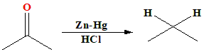 Thus, the reaction given in the question is correct. C. Clemmensen reduction: The Clemmensen Reduction allows the deoxygenation of aldehydes or ketones, to produce the corresponding hydrocarbon. The substrate must be stable to strong acid. The Clemmensen Reduction is complementary to the Wolff-Kishner Reduction, which is run under strongly basic conditions. Acid-labile molecules should be reduced by the Wolff-Kishner protocol.