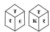 Step 1) In figure 1 and 2 Step 2) Compare both the figure and we find out ₮ and ₹ both are common Step 3) Therefore ₭ will be opposite to € |
