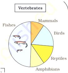 The correct answer is Option (3) → Fishes Among vertebrates, fishes have the highest number of species. They are the most diverse vertebrate group, surpassing other vertebrate groups such as birds, reptiles, and amphibians. |