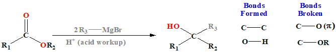 The correct answer is option 1. \(CH_3COOC_2H_5;\, \ (CH_3)_3COH\). Let us analyze the reaction step by step to identify the correct ester (A) and alcohol (B). Given, Ester (A): \(C_4H_8O_2\) Alcohol (B): \(C_4H_{10}O\) When an ester reacts with 2 equivalents of a Grignard reagent (\(RMgX\)), it forms a tertiary alcohol. General Reaction: