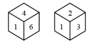 Two different positions of the same dice are shown. Select the number that will be at the top if '6' is at the bottom. |