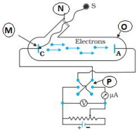 In experimental arrangement to study photoelectric effect, here M, N, O and P respectively are (A) Commutator Choose the correct answer from the options given below: |