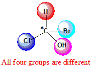 The correct answer is option 1. A chiral center is defined as an atom in a molecule that is bonded to four different chemical species, allowing for optical isomerism. It is a stereocenter that holds a set of atoms (ligands) in space such that the structure may not be superimposed on its mirror image.