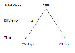 A = \(\frac{4}{5}\)W = 20 days = 25 days, B = \(\frac{3}{4}\)W = 15 days = 20 days,