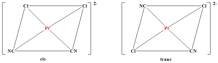 [PdCl3NH3]- [Pd(CN)5NH3]- [PtCl2(CN)2]2- [Pt(C2O4)2]2- |