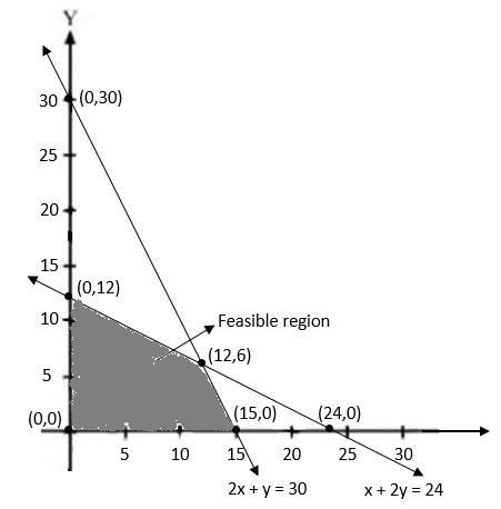 What is the maximum value of \(P=6x+8y\), when the conditions are: \(2x+y\leq 30; x+2y\leq 24; x\geq 0; y\geq 0\)