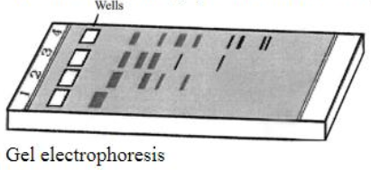 The figure is showing the technique of gel electrophoresis. The matrix used in this technique is made out of: |