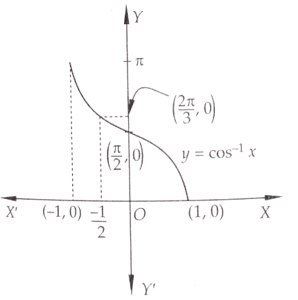 $cos^{-1}\left(\frac{n}{2\pi}\right) > \frac{2\pi}{3}$ $ ⇒ - 1 < \frac{n}{2\pi} < -\frac{1}{2}$ $ ⇒ -2 \pi < n < - \pi $ $ ⇒ -6.18 < n < - 3.14 $ $ ⇒ -6 ≤ n ≤ -4 $ where n ∈ Z. |
