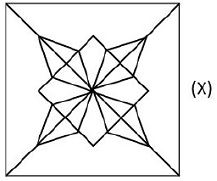 The given figure (X) is a complex star-like pattern formed by intersecting diagonal lines radiating from the center.
