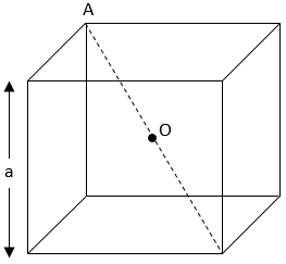 The correct answer is Option (2) → $\frac{4Q}{\sqrt{3}πε_0a}$ To calculate the potential at the center of the cube due to charges Q at each of its vertices, $V=\frac{KQ}{r}$ $r=\frac{Body\,Diagonal}{2}=\sqrt{\frac{a^2+2a^2}{2}}=\frac{\sqrt{3}a}{2}$ $∴V_{total}=8×\frac{KQ}{\frac{\sqrt{3}a}{2}}=\frac{16KQ}{\sqrt{3}a}=\frac{4Q}{\sqrt{3}πε_0a}$ |