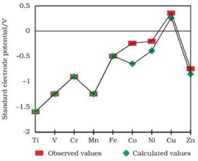 Observed and calculated values for the standard electrode potentials ($M^{2+}→ M$) are shown in the figure above. Based on the data shown, which of the following statements are true? (A) Cu is not able to liberate $H_2$ from acid. Choose the correct answer from the options given below: |