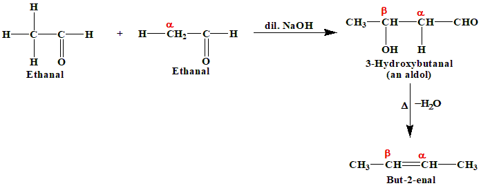 The correct answer is option 4. 2,2-Dimethyl butane. Aldol Condensation is a reaction in organic chemistry where an aldehyde or ketone, containing at least one α-hydrogen, reacts with another aldehyde or ketone under basic conditions to form a β-hydroxy aldehyde or ketone (an aldol). This product can further dehydrate to form an α,β-unsaturated carbonyl compound. Key Conditions for Aldol Condensation: Presence of α-Hydrogens: The molecule must have at least one hydrogen atom on the carbon adjacent to the carbonyl group. These α-hydrogens are crucial for the formation of the enolate ion, which is an intermediate in the aldol reaction. Basic Conditions: The reaction typically requires a strong base to deprotonate the α-hydrogens and form the enolate ion. Analysis of the Given Compounds 1. Ethanal (CH₃CHO): Ethanal (acetaldehyde) has the structure CH₃CHO. The carbonyl group is adjacent to a carbon that has α-hydrogens (on the CH₃ group). Ethanal can form an enolate ion when treated with a base. The aldol condensation will proceed to give 3-hydroxybutanal, which can further dehydrate to form But-2-ene.