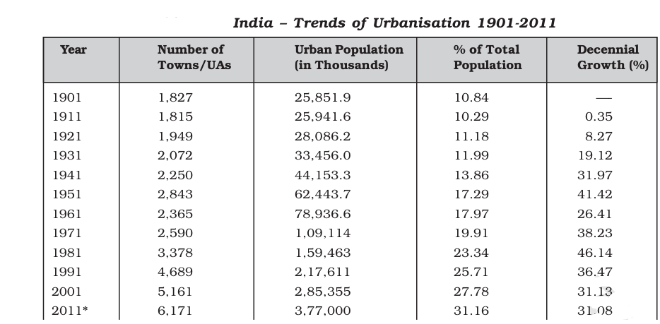Arrange the following census years in descending order of decennial growth of urbanization in India: (A) 1971 Choose the correct answer from the options given below: |