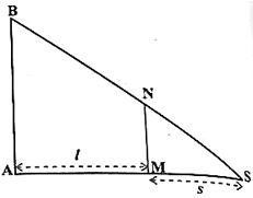 The correct answer is Option (3) → 2.5 km/h ## In Fig, Let $AB$ be the lamp-post, the lamp being at the position $B$ and let $MN$ be the man at a particular time $t$ and let $AM = l$ metres. Then, $MS$ is the shadow of the man. Let $MS = s$ metres. Note that $\quad \Delta MSN \sim \Delta ASB$ or $\quad \frac{MS}{AS} = \frac{MN}{AB}$ or $\quad AS = 3s$ (as $MN = 2$ and $AB = 6$ (given)) Thus $\quad AM = 3s - s = 2s$. But $AM = l$ So $\quad l = 2s$ Therefore $\quad \frac{dl}{dt} = 2 \frac{ds}{dt}$ Since $\frac{dl}{dt} = 5$ km/h. Hence, the length of the shadow increases at the rate $\frac{5}{2}$ km/h. |