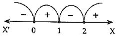 The correct answer is Option (2) → Increasing on $[0,1]∪[2,∞)$; Tangents parallel to x-axis at $x=0,1,2$. Given $f(x) = (x (x-2))^2 = x^2 (x-2)^2, D_f= R$. Differentiating w.r.t. x, we get $f'(x) = x^2.2(x-2)+(x-2)^2.2x$ $= 2x (x-2) (x + x-2)=2x (x-2) (2x-2)$ $= 4x (x-1) (x-2)$. Now, the given function f is (strict) increasing iff $f'(x) > 0$ $⇒4x (x-1) (x-2) > 0$ $⇒x (x − 1) (x − 2) > 0$ $⇒x ∈ (0,1) ∪(2,0)$ ⇒ f is (strict) increasing in $[0, 1] ∪ [2, ∞)$. Further, the tangents will be parallel to x-axis iff $f'(x) = 0$ $⇒ 4x (x-1) (x-2)=0⇒x= 0, 1, 2$. The given curve is $y = x^2 (x-2)^2$. When $x = 0, y = 0$; when $x = 1, y = 1^2 (1-2)^2 = 1 × (-1)^2=1 × 1 = 1;$ when $x = 2, y = 2^2 (2-2)^2=4×0 = 0$. ∴ The points on the given curve where the tangents are parallel to x-axis are (0, 0), (1, 1) and (2, 0). |