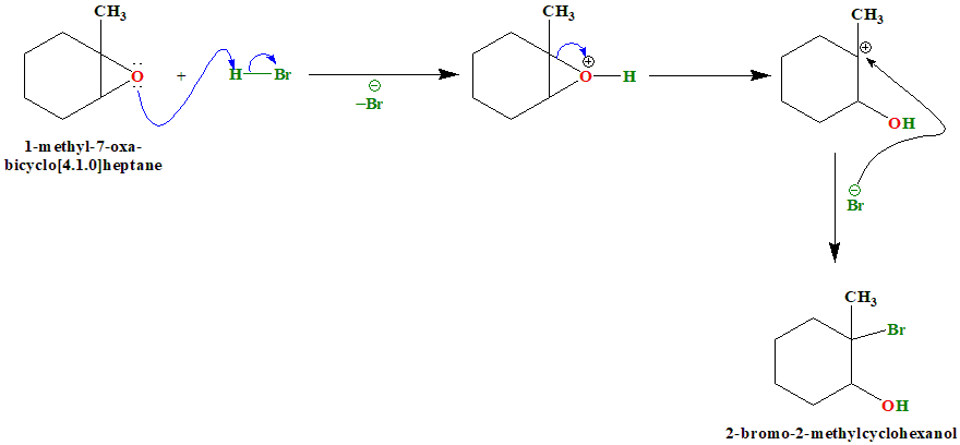 In the presence of an acid, cyclic ethers are cleaved and the nucleophile attacks at the carbon which is more substituted. Thus the reaction will be as follows: