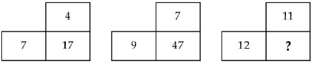 3) 11, 12, ? ⇒ (11 × 12) - (11 + 12) = 132 - 23 = 109 |