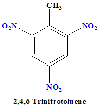 Other Options: Trinitrotoluene: This term is more general and does not specify the exact positions of the nitro groups on the benzene ring. o-Nitrotoluene: This refers to the nitro group attached to the 2nd position relative to the methyl group, but with only one nitro group. m-Nitrotoluene: This refers to the nitro group attached to the 3rd position relative to the methyl group, again with only one nitro group. Conclusion: The correct chemical name for TNT is 2,4,6-trinitrotoluene. |