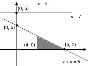 The feasible region represented by the constraints of the linear programming problem : $x+ y≤6, y ≤ 7, x≥4, x, y ≥0$ is : |