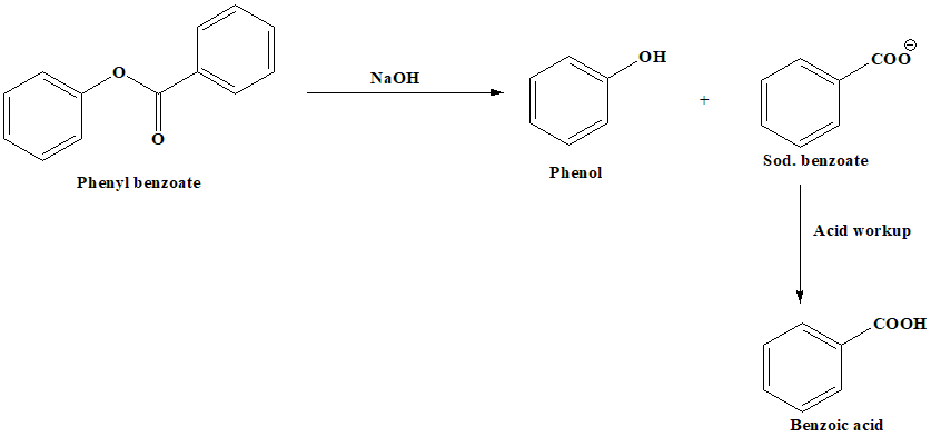 The compound phenyl benzoate on reaction with NaOH solution will yield: A. Phenol Choose the correct answer from the options given below: |