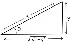 hypotenuse = x side = y (x+y) → constant $\cos \theta=\frac{y}{x}$ area = $\frac{1}{2}\left(\sqrt{x^2-y^2}\right) \times y$ .....(1) Let x + y = k ⇒ x = k - y substituting in (1) we get area = $\frac{1}{2} \sqrt{(k-y)^2-y^2} \times y$ area = $\frac{1}{2} \sqrt{k^2+y^2-y^2+2 k y} \times y$ area = $\frac{1}{2} \sqrt{k^2-2 k y} \times y$ squaring both sides (area)2 = $\frac{1}{4}\left(k^2-2 k y\right) y^2$ [Let area2 = A] $A=\frac{1}{4}\left(k^2 y^2-2 k y^3\right)$ ......(2) for area maximum/minimum $\frac{dy}{dx} = 0$ differentiating (2) $\frac{1}{4}\left(2 k^2 y-6 k y^2\right)=0$ $2 k^2 y=6 k y^2$ $k y=3 y^2$ $k=3 y$ $x+y=3 y$ (as k = x + y) $x=2 y$ $\frac{x}{y}=2$ $\frac{1}{2} =\frac{y}{x}$ $\Rightarrow \cos \theta =\frac{1}{2}$ (as $\frac{y}{x} = \cos \theta$) $\theta=\cos ^{-1}(\frac{1}{2})=\frac{\pi}{3}$ |