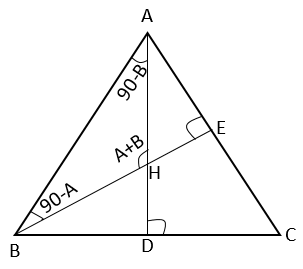 from $ΔAHB$ $\frac{AH}{\sin(90-A)}=\frac{AB}{\sin(A+B)}=\frac{BH}{sin(90-B)}$ $⇒\frac{AH}{\sin(90-A)}=\frac{AB}{\sin(A+B)}=\frac{C}{sin(180-(A+B))}$ $⇒\frac{AH}{\cos A}=\frac{c}{\sin C}=\frac{a}{\sin A}$ $⇒AH=a\cot A$ |