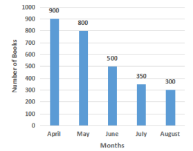 The following graph shows the number of books sold by a book-seller during five months of 2019, April, May, June, July and August. Study the graph and answer the question. The total number of books sold during these five months is: |