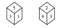 Two different positions of the same dice are shown. Select the number that will be at the top if '1' is at the bottom. |
