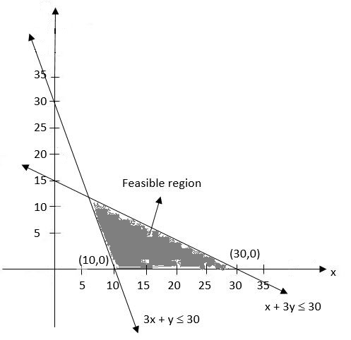 The minimum value of the objective function $Z= 30x + 10 y $ subject to the constraints $x+2y≤30, 3x+y ≥30, 4x+3y≥60, x, y ≥ 0$ is