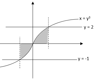 Area of the region bounded by $y=-1, y=2, x=y^3$ and $x=0$ is: |