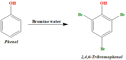 Bromophenol is produced 2,4-Dibromophenol is produced 2,4,6-Tribromophenol is produced 2,3,5-Tribromophenol is produced |