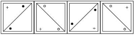 The correct answer is Option 4: Observe the pattern in the four given figures. 1. Diagonal line pattern The diagonal alternates direction: So the next figure must have a diagonal from top-left to bottom-right. 2. Symbol movementThe plus (+) and dots rotate clockwise around the corners in each step. Following the same movement from the 4th figure, the next figure should have: