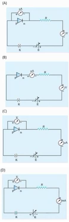 Choose the correct circuit for the forward bias of p-n junction diode: Choose the correct answer from the options given below: |