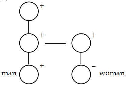 Note: ↑ or ↓ ⇒ Upward or downward line shown "generation gap" . = ⇒ Double lines shown "relation b/w Husband & Wife" — ⇒ single line shown "relation between them other than Husband & Wife". + ⇒ Plus sign shown " Male". - ⇒minus sign shown " Female". |