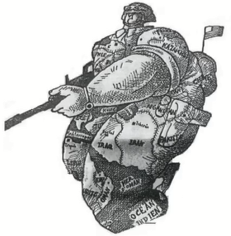 *The correct answer is Option 1: USA* USA is represented by this mighty soldier. The above cartoon shows Hegemony of USA as hard power. The soldier is carrying the flag of USA on its back. The soldier in the image is a clear symbol of military force, which is a form of hard power. |