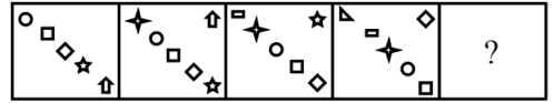 The logic followed here is; every diagram moves by one step in next figure; for example; the square is on the 2nd postion in 1st figure then it moves by one step and goes on 3rd position and then 4th in next step and the square should replace Rhombus Therefore, option (4) is correct because every diagram moves by one step |
