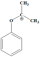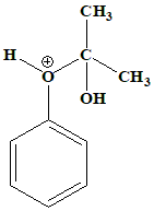 The positive charge on the oxygen atom directly attached to the benzene ring is due to the bonding of oxygen to three atoms while its valency is only two. This creates instability in the structure. The bond between \(O^+−C\) is cleaved by the actions of the acidic medium and we get our final products as phenol and acetone. |