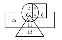 The given Venn diagram represents employees in an organisation: The triangle represents executives, the circle represents females, the rectangle represents MBAs and the square represents technical staff. The numbers given in the diagram represent the number of persons in that particular category. How many female executives are there in the organisation? |