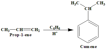 The correct answer is option 1. Let us analyze the reaction sequence thoroughly. The initial reaction in the question is prop-1-ene. So, the steps of the reaction will be as follows: Step 1: \(Prop-1-ene \ \underset{H^+}{\overset{C_6H_6}{\longrightarrow}} A\) So, compound A is cumene.