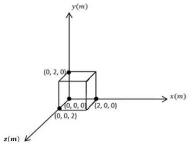 A cube is placed at the origin as shown in the figure. The electric field in the region is given as $\vec E = (200 x^2\hat i)\frac{N}{C}$. The flux coming out of the cube is: |