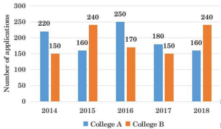 Total number of applications accepted from college A and B in 2015 = 160 + 240 = 400 Accepted applications from college A and B in 2015 = \(\frac{60 }{100}\) × 400 = \(\frac{3 }{5}\) × 400 = 240 |