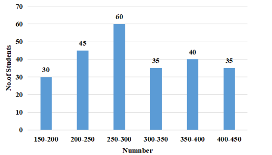 Study the following graph which shows the marks obtained by students in the examination and answer the questions. The number of students obtained 350 and more marks is how much more than the number of students obtained the marks between 200 to 300? |