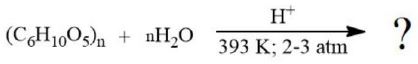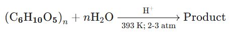 The product obtained is: $$\mathbf{n\text{C}_6\text{H}_{12}\text{O}_6} \quad (\alpha-\text{D}-\text{Glucose})$$ The product obtained, when starch is hydrolyzed with dilute sulphuric acid at $\text{393 K}$ under pressure, is $\alpha-\text{D}-\text{Glucose}$ (or simply Glucose). |