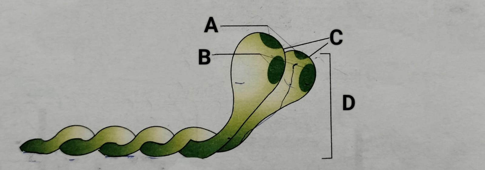 Identified the parts labelled as A , B , C and D in the given diagram.