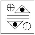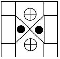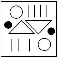 The problem figure is composed of four quadrants containing the same basic elements: two filled dots, sets of parallel lines, and circles with a cross.