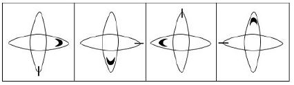 Simultaneously, the small arrow on the vertical oval alternates its position/direction in a fixed cycle.