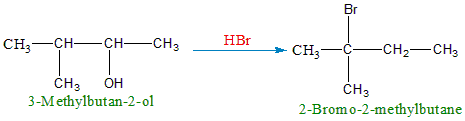 The reaction of 3-methylbutan-2-ol with HBr, will give: |